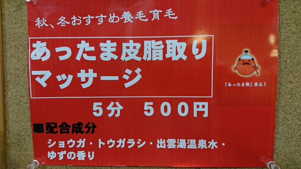 あったま皮脂取りマッサージ 2024年11月1日 最終更新日時 : 2024年11月25日 tease 寒くなってきた季節にピッタリのティーズの大人気メニューが今年もやって来ました!!! 「あったま皮脂取りマッサージ」(500円) 蒸気で頭皮で温めながら極上のマッサージで育毛効果抜群です。 T’easeの大人気メニューぜひお試しください!(^^)!